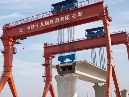 榀長32.6米、寬12.6米、高3.035米、重821.86噸的預(yù)制箱梁經(jīng)過跨墩提梁機的拖拽牽引,落至預(yù)定橋墩位置,而鋼絲繩葫蘆被用于輔助吊運工作中。除此之外,葫蘆還能在力所能及范圍內(nèi)吊運其他類型的重物,為重物的吊運和精準定位提供了便利。