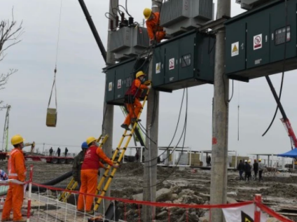 這些用電設(shè)施需要大量的電力作為保障,電力施工人員組建“突擊隊(duì)”,準(zhǔn)備施工隊(duì)伍和物資,快速開展現(xiàn)場查勘,施工人員使用便攜式電動(dòng)葫蘆、手拉葫蘆等吊裝工具在5天內(nèi)就迅速完成了8基桿塔立桿、4臺變壓器安裝以及800米電纜敷設(shè)任務(wù),提前完成方艙隔離點(diǎn)用電保障任務(wù)。